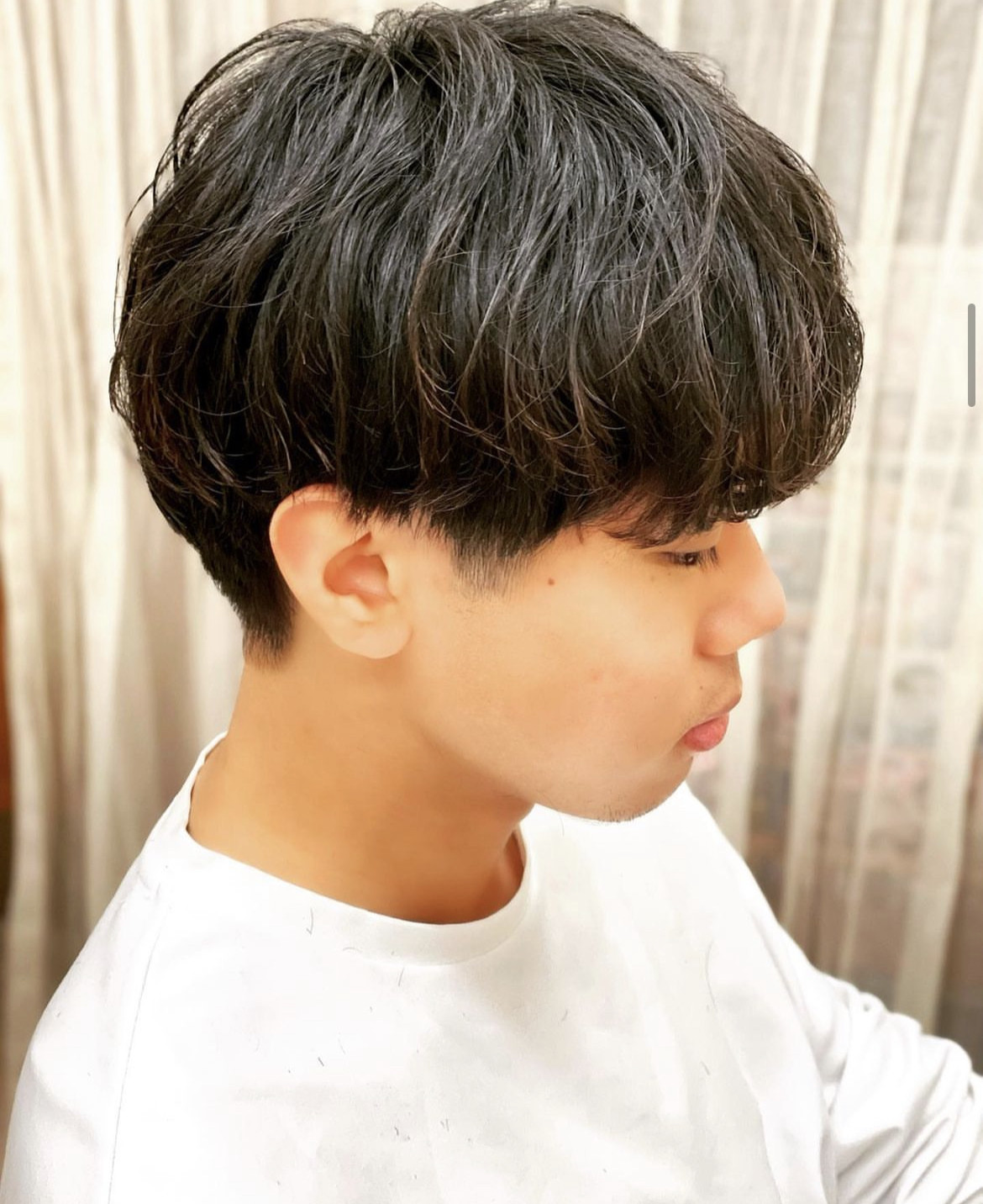 癖毛でボリュームの出やすい髪質なので内側でしっかり毛量調節。